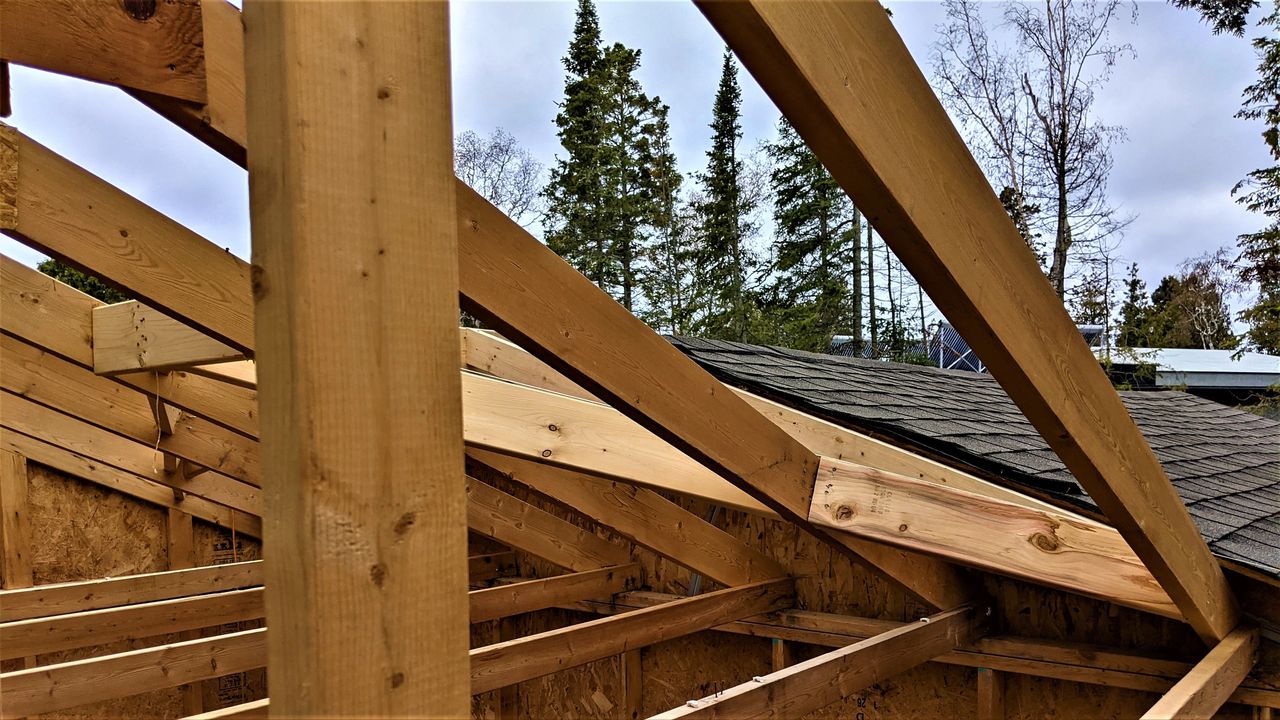 We were trying to finish building the roof of the garage this week, but again the weather didn’t cooperate. In February when we needed it to be cold to move the garage over the ice rink we had 10+ degree Celsius weather. Now that we need it warm it’s 0 degrees Celsius and snowing!!