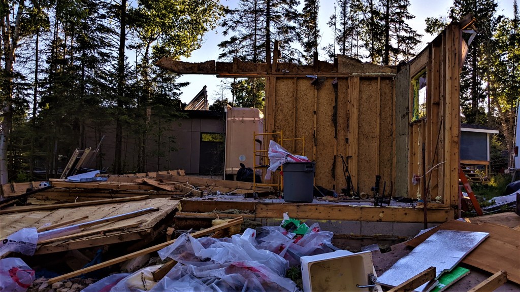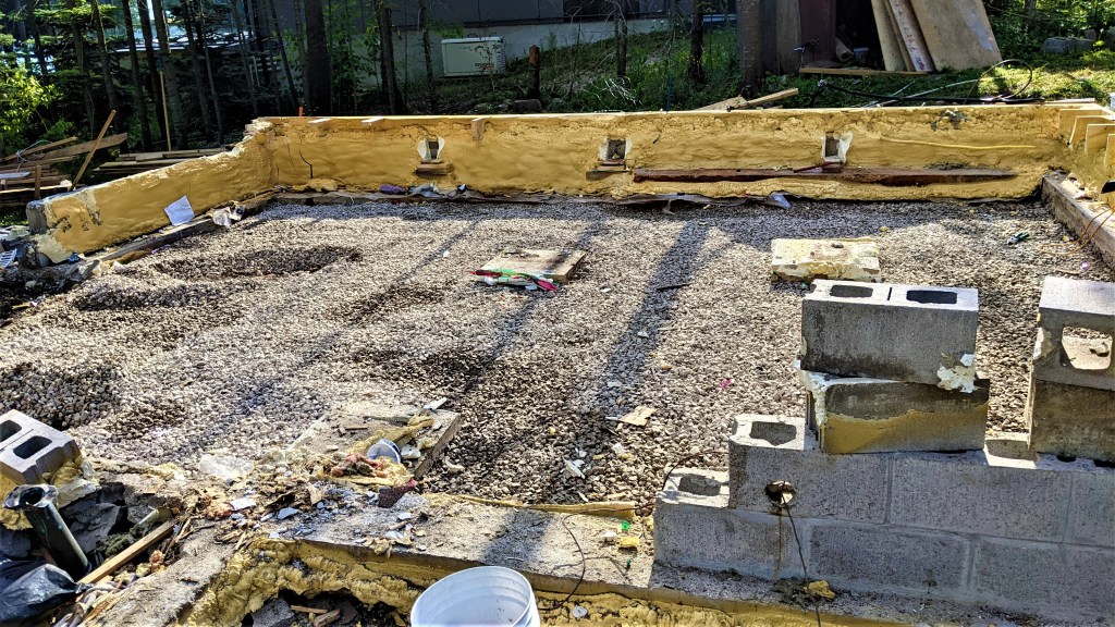 Demolition is basically complete. There is a little bit of the foundation left that we’re hoping can be broken up by the guy coming to take out the septic tank this coming week and dig some foundation. That’s the part of the foundation that we filled with concrete back when we thought we were keeping the house. See All Rotten on the Western Front and All Rotten on the Western Front part 2 for more information. We found the old septic tank buried under where previous owners had built the western addition. FUN TIMES!
