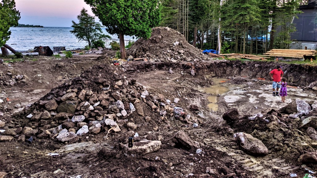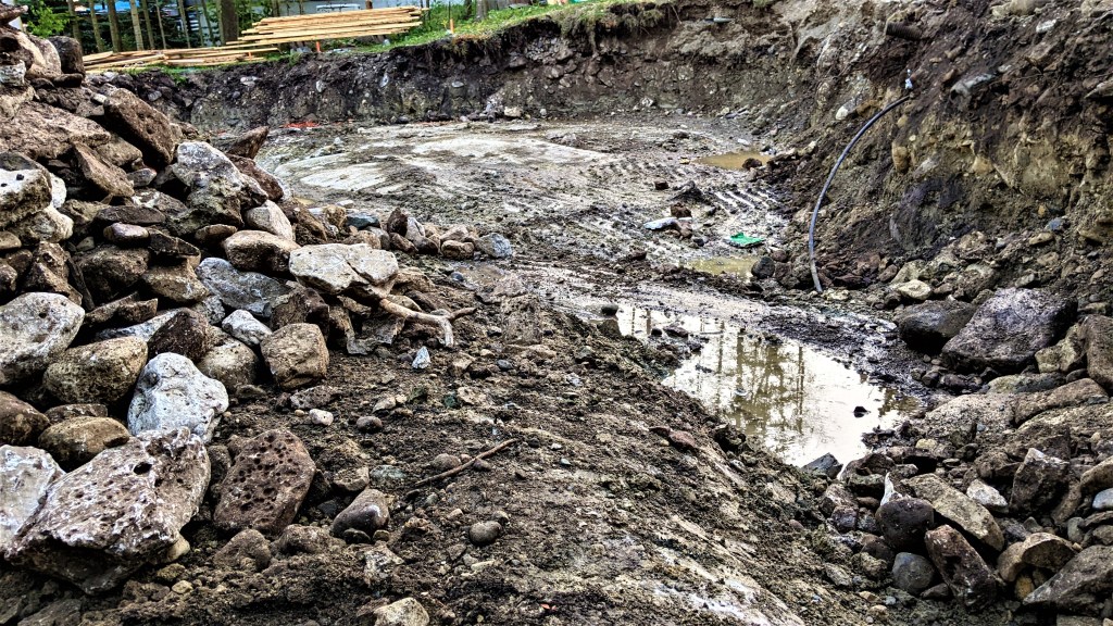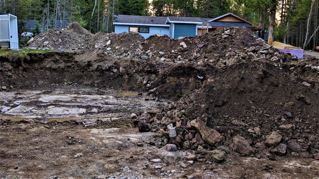 Why is this a big issue? Because we calculated how much ICF block we would need for the foundation based on the bedrock level under the east side of the house. With the west side being so much lower we need to rework how we’re going to do the foundation. Do we get more ICF blocks or stagger the blocks to make what we have do the job we need to do? We’re not sure yet. All we know for sure right now is all our math for the ICF calculation was wrong.