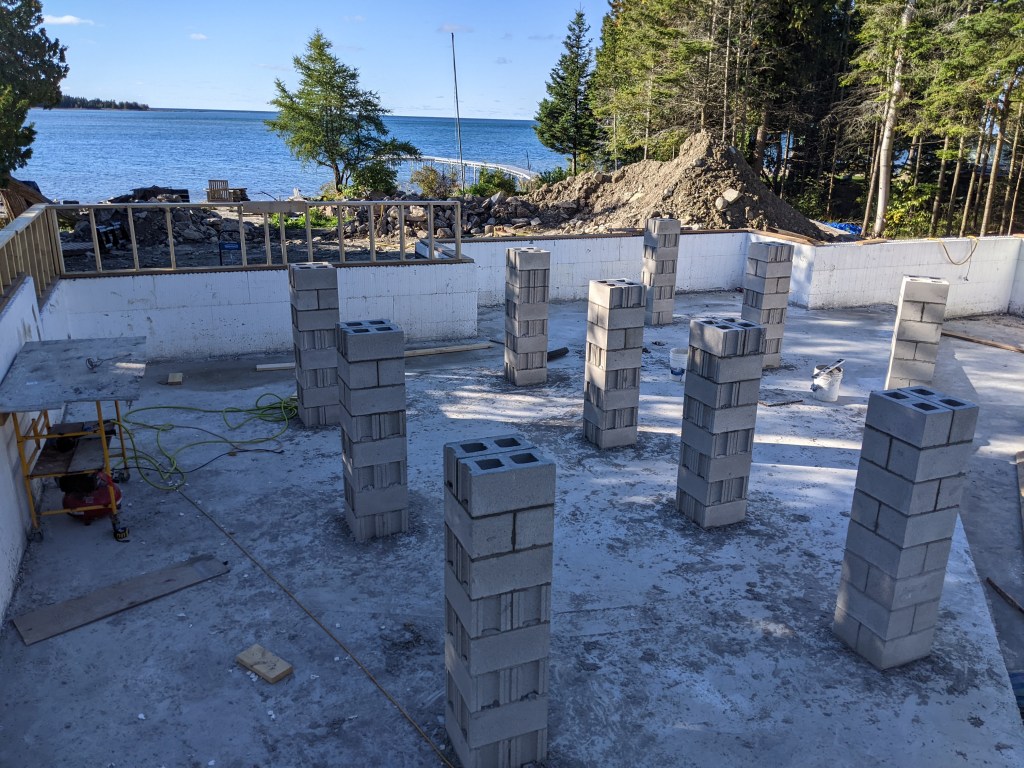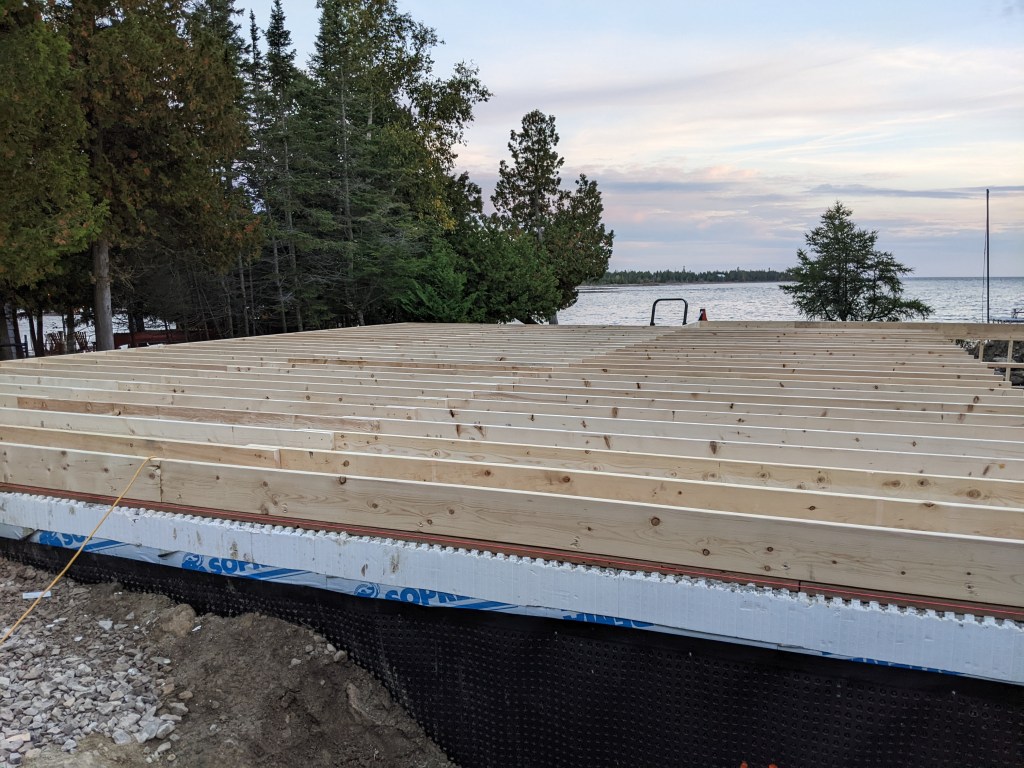 The weather has been cold in the mornings but generally warming up around noon and as we work. It’s starting to come together and it’s beginning to look like a house. Once the floors are done we’ll get started on the first-floor walls. It still remains to be seen if we can have walls, a roof, and insulation before the first snow falls, but I’m feeling a lot better about our chances now than I was a month ago.