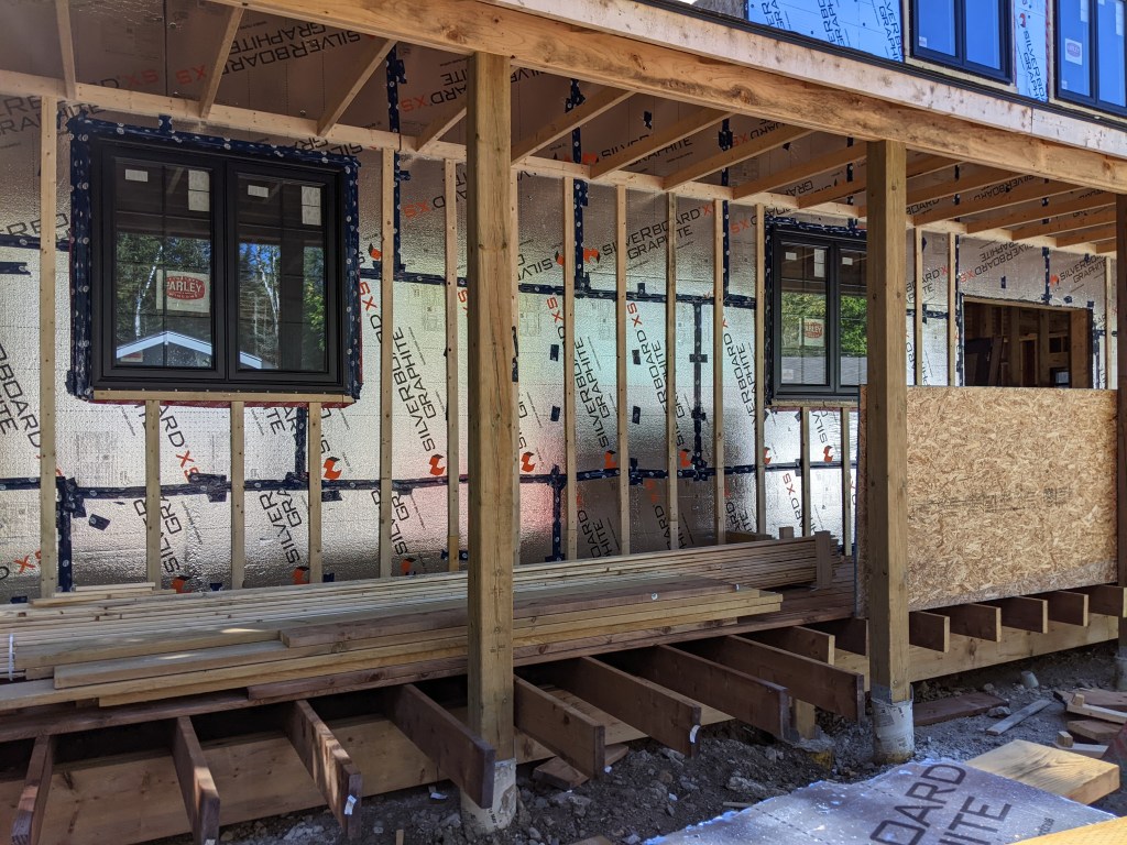 As for the exterior, we have all the windows now installed except for the two needed in the basement, and we have most of the house with the exterior foam and strapping. We have decided to push off purchasing siding until next summer since this is acceptable for getting the occupancy permit, which we hope to have so we can move in before winter. It may be a little tight, but we will be starting electrical and plumbing soon and after that is done we can install drywall.