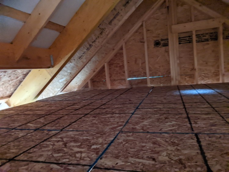 In October, some of this area will be filled in with spray foam for insulation, as well as the rest of the roofline and the south wall facing the lake, but the rest of it will be available as storage space. I have no idea what we will put in this storage space as the house will already have far more places than we have stuff, but I’m sure we will eventually fill it.