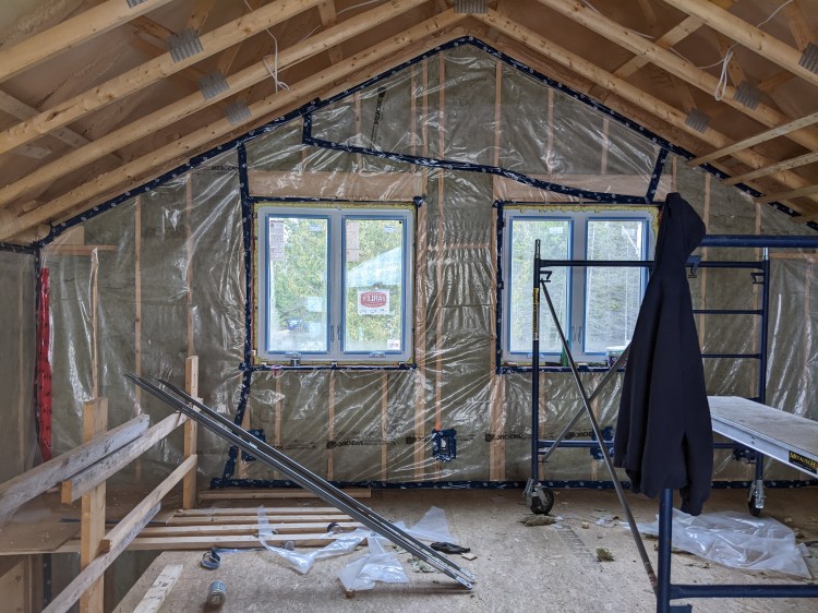 But it’s an invoice I will happily pay, as the insulation has made inside the house noticibly warmer than the outside of the house. In fact, I would say the inside of the current house is warmer without proper heat than the old house (which we tore down) was with heat. We have a couple of small electric heaters in it for now as we wait for the furnace people to come install the furnace and duct work.