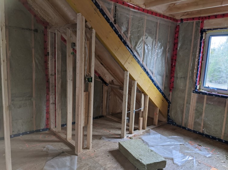 Lake side spare room (east side of house) – showing spray foam and rockwool insulation