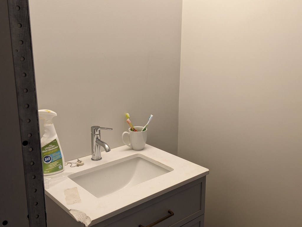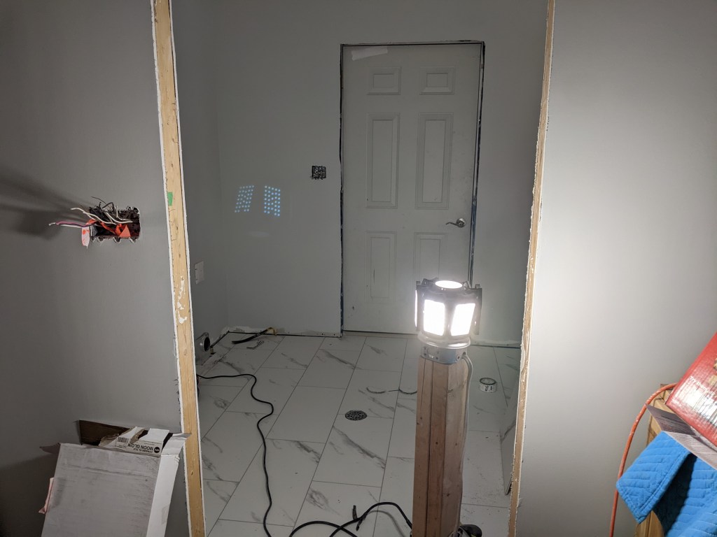 Between the spare rooms, a half bath has been completed, (except for doors, which are coming) providing a fully functional bathroom within the house. It’s a small yet crucial step towards making our living space fully operational.