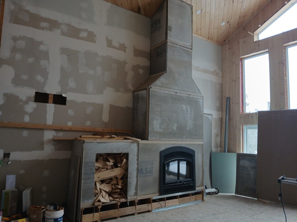 In the great room we finished boxing in the mantle for the fireplace and got the wood installed on the south wall. Still need to get the Wett certification before we can actually use the fireplace, but since we don’t yet have a couch to curl up on with a hot chocolate as it snows outside, it isn’t a big deal. We have found the house is already warm with the heat set low, so we imagine this will warm the house quite a bit.