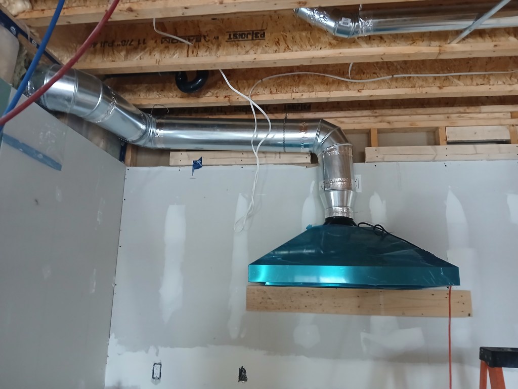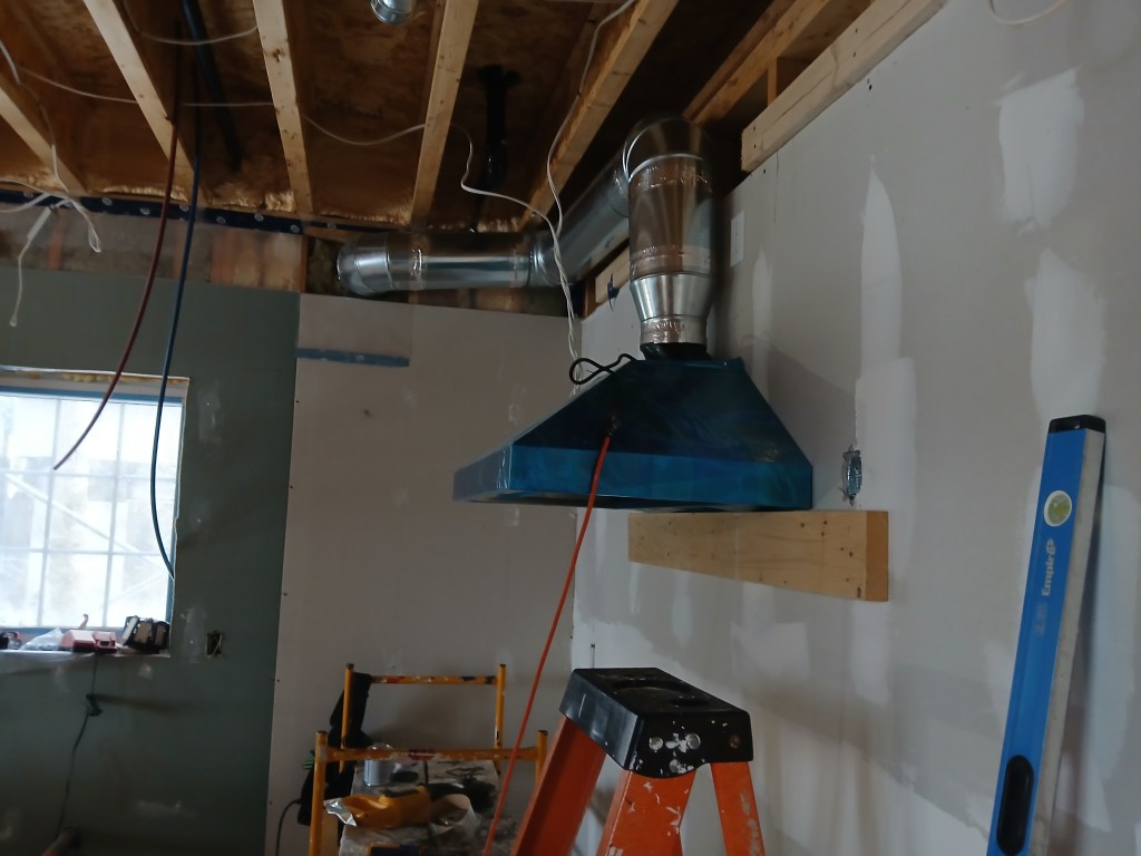 In the kitchen we got the hood installed over the stove (only the stove isn’t there yet.) It has been turned on to test it and OMG is this thing quiet! It also lights up the area underneath quite nicely and has a dimmer in case you need less light. Like the floor, this was purchased ages ago and has been sitting in the box for months.