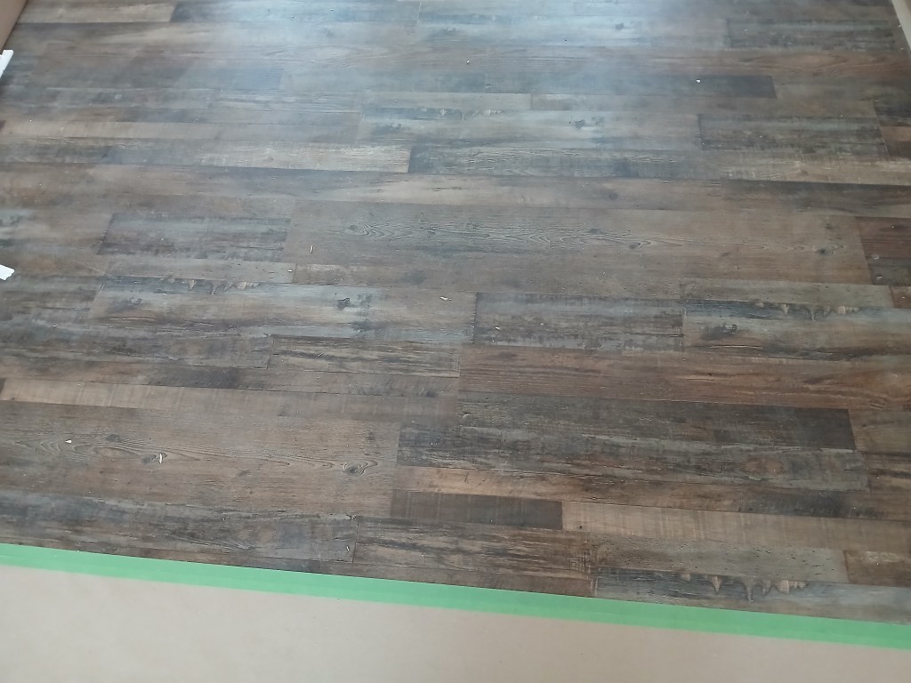 And we floored the loft office area with flooring called River Walk. This is the floor that will be in the majority of the house as it will be in the office, the great room, the dining room, and the kitchen. All three of the floors discussed in this blog are a click together vinyl that is waterproff. We felt that was a decent idea with the lake and the snow.